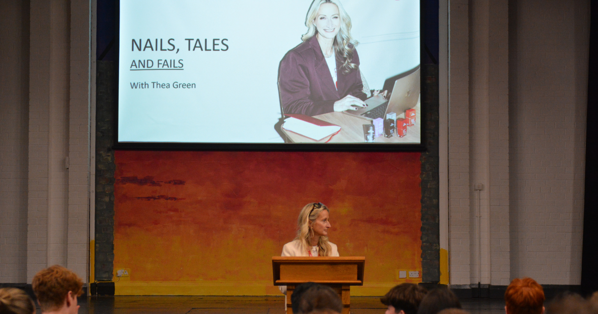 It was a pleasure to welcome Thea Green MBE, founder of Nails Inc, to our school last week for an inspiring talk as part of the Nicholls Lecture Series.